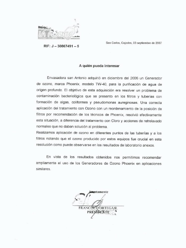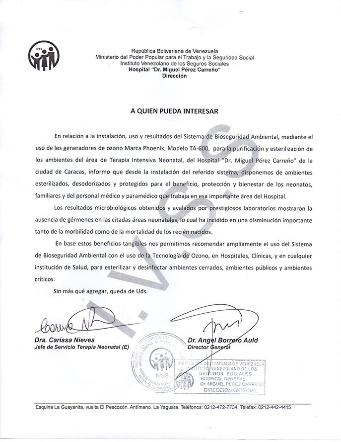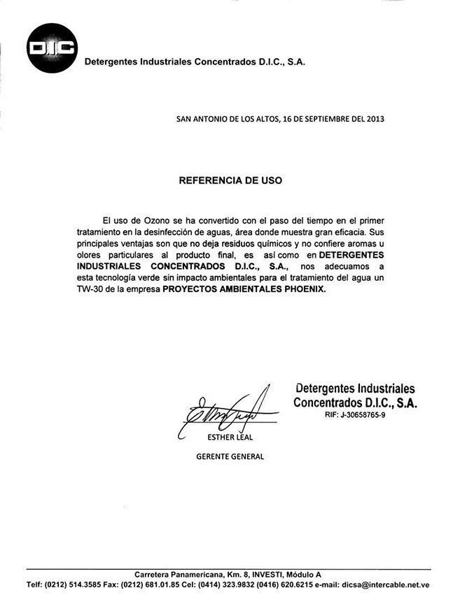 En el año 2011, a raíz del suceso que afectó a cuatro de las toninas que vivían en cautiverio en el Acuario de Valencia – Venezuela, Proyectos Ambientales Phoenix participó en el proyecto de mejora de la calidad del agua de los mamíferos sobrevivientes aportando su tecnología de generadores de ozono. El sistema consistió en filtrar el agua proveniente de Hidrocentro, incrementó de la tasa de recirculación del agua de las piscinas a través de los filtros y la inyección de ozono en línea a fin de reducir la materia orgánica y desinfectar el agua.